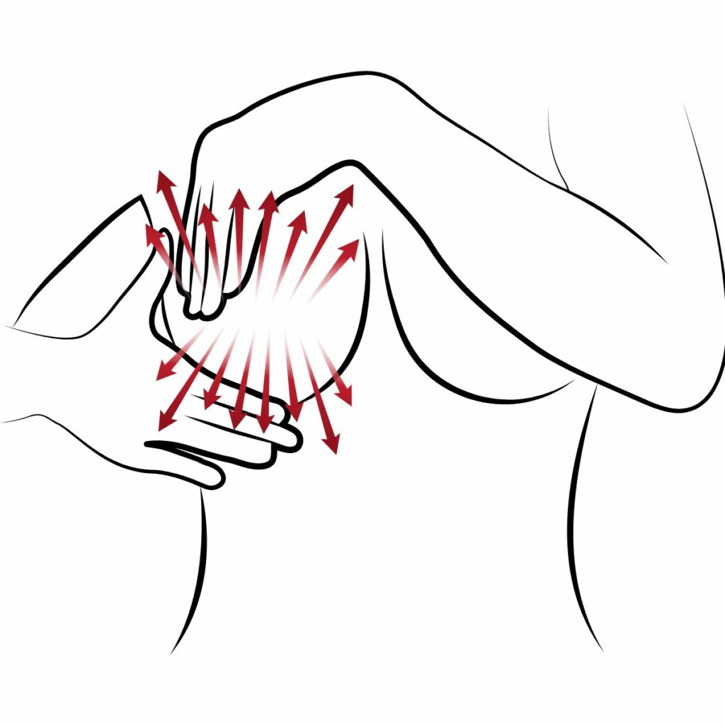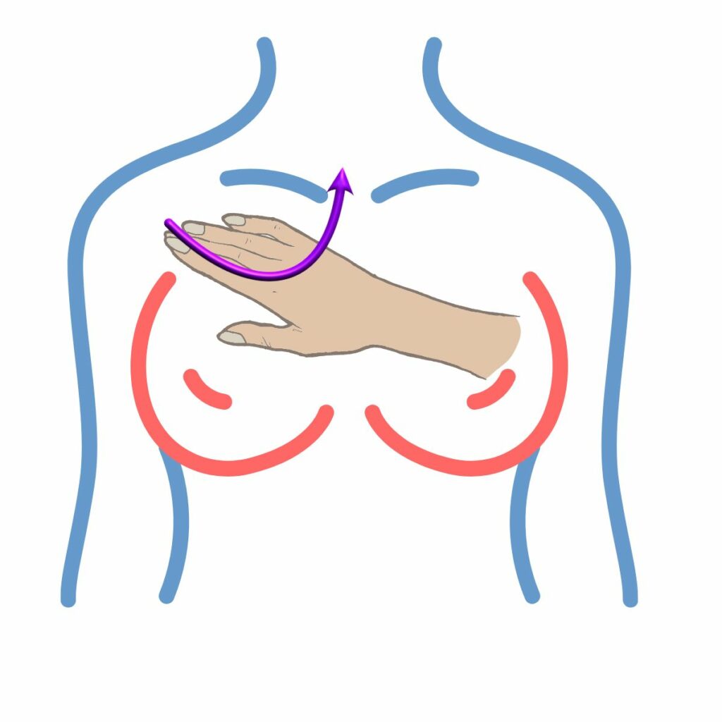 Με την παλάμη μας πιέζουμε ελαφρά στο πάνω μέρος του μαστού, με φορά από τη μασχάλη προς το κέντρο και επάνω, προς τον λαιμό.